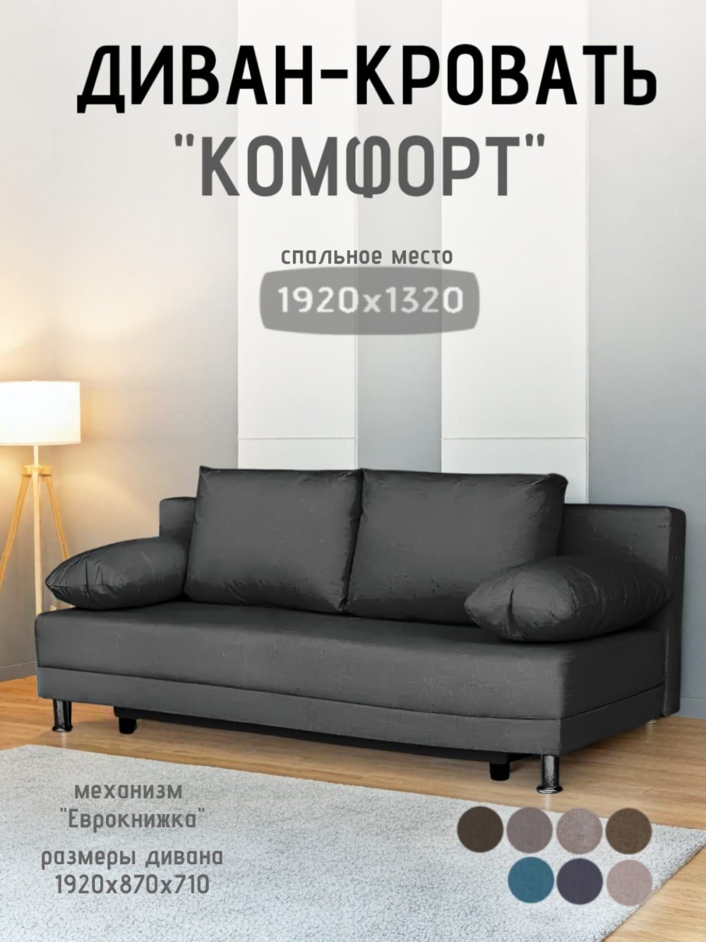 Комфорт, ценность - основные составляющие очень недорогого дивана Комфорт. Механизм трансформации "Еврокнижка" превращает диван в двухспальную кровать.