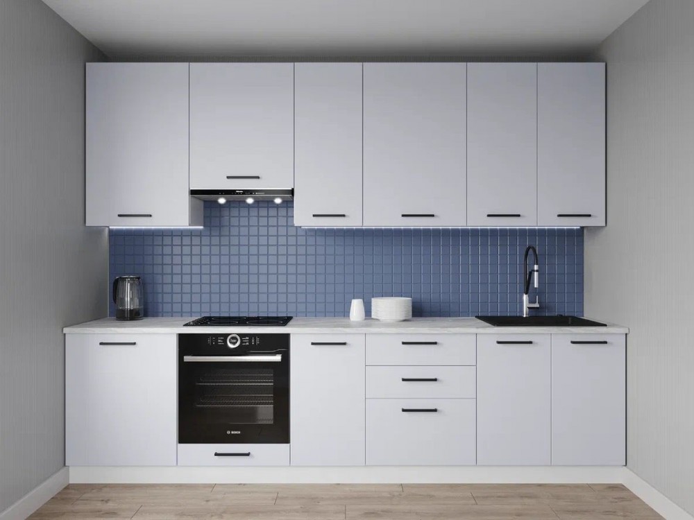 Интернет-магазин "Мебель 24" рад предложить Кухонный гарнитур Смоки 2400 h950 (Стол. 26мм) по привлекательной цене, от производителя САНВУТ.