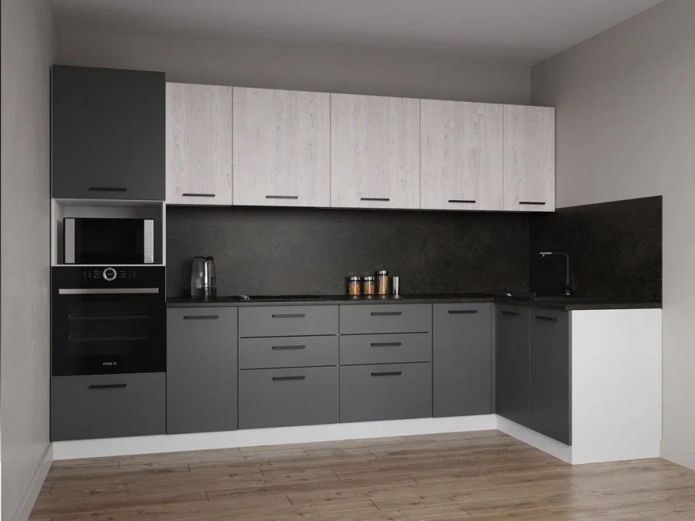 Интернет-магазин "Мебель 24" рад предложить Кухонный гарнитур угловой Санторини 3200*1400 (Стол. 38мм) по привлекательной цене, от производителя САНВУТ.