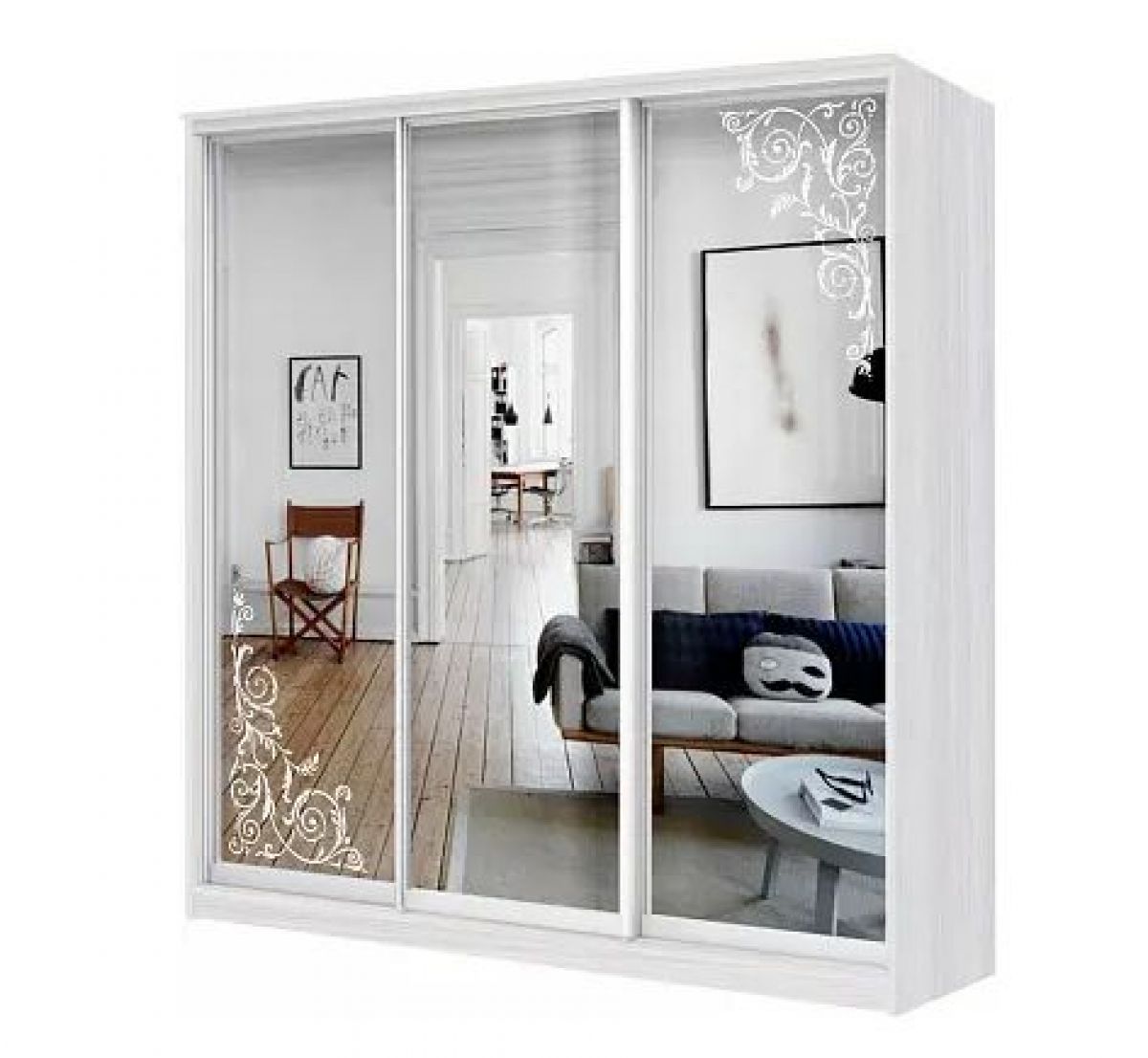 Фасад: 1 дверь Зеркало + 2 двери Зеркало с пескоструйной обработкой