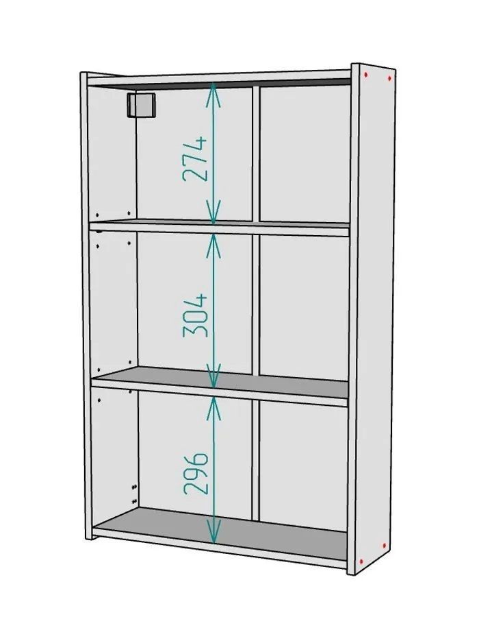 Полки в навесном шкафу регулируются по высоте.