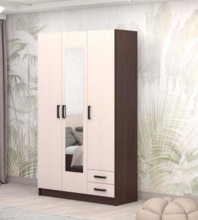 Шкаф распашной Эконом + Зеркало (Венге/Дуб Белфорд)